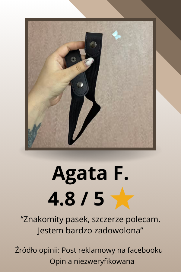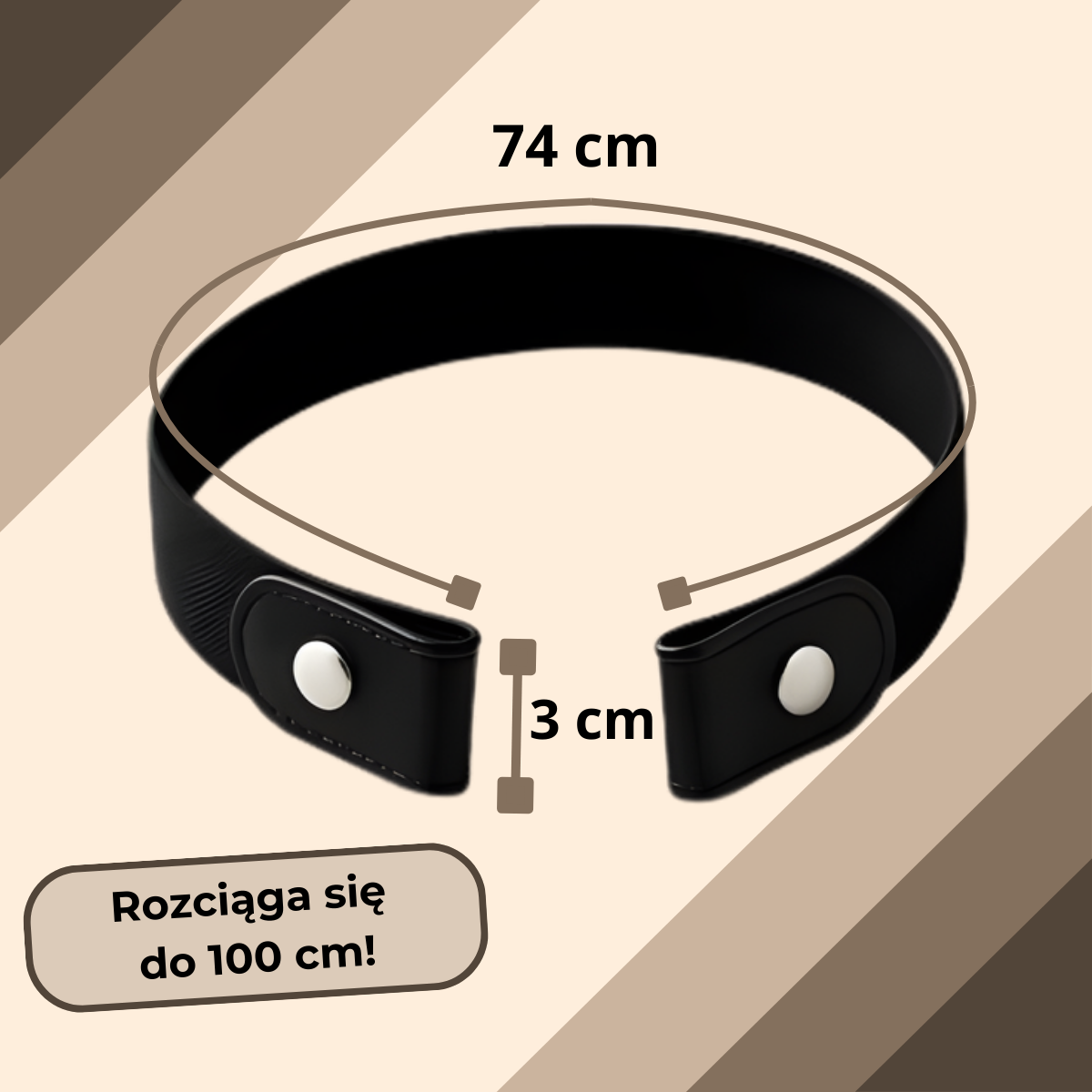 Dzięki swojej elastyczności pasek pasuje do wszystkich rozmiarów spodni i spódniczek. Ponad to wykonany jest z niezwykle wytrzymałej gumy, dajemy gwarancję, że się nie zerwie.