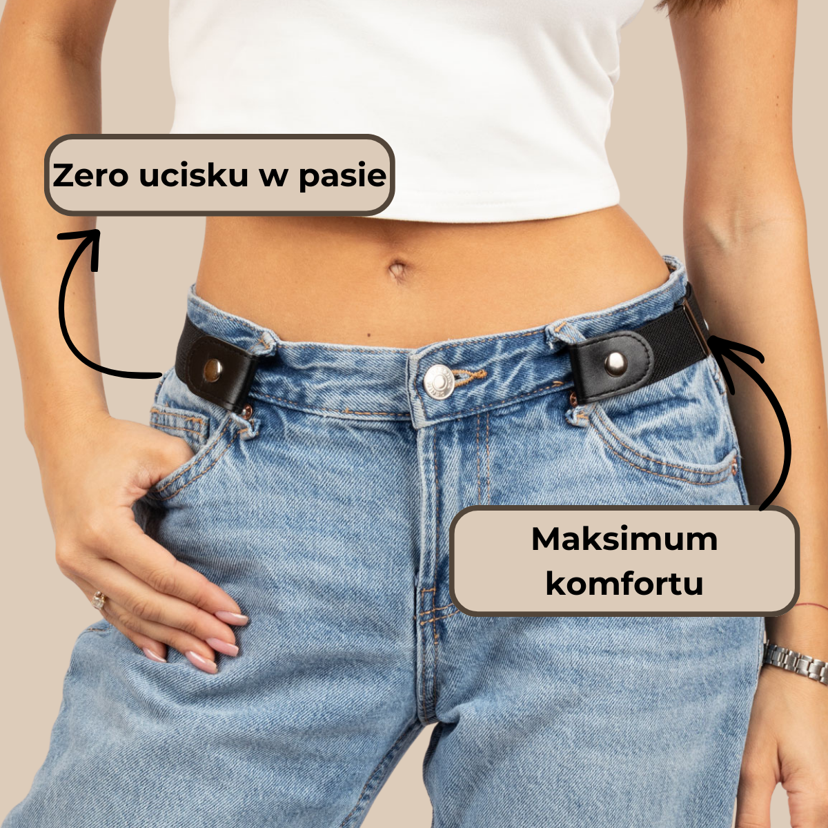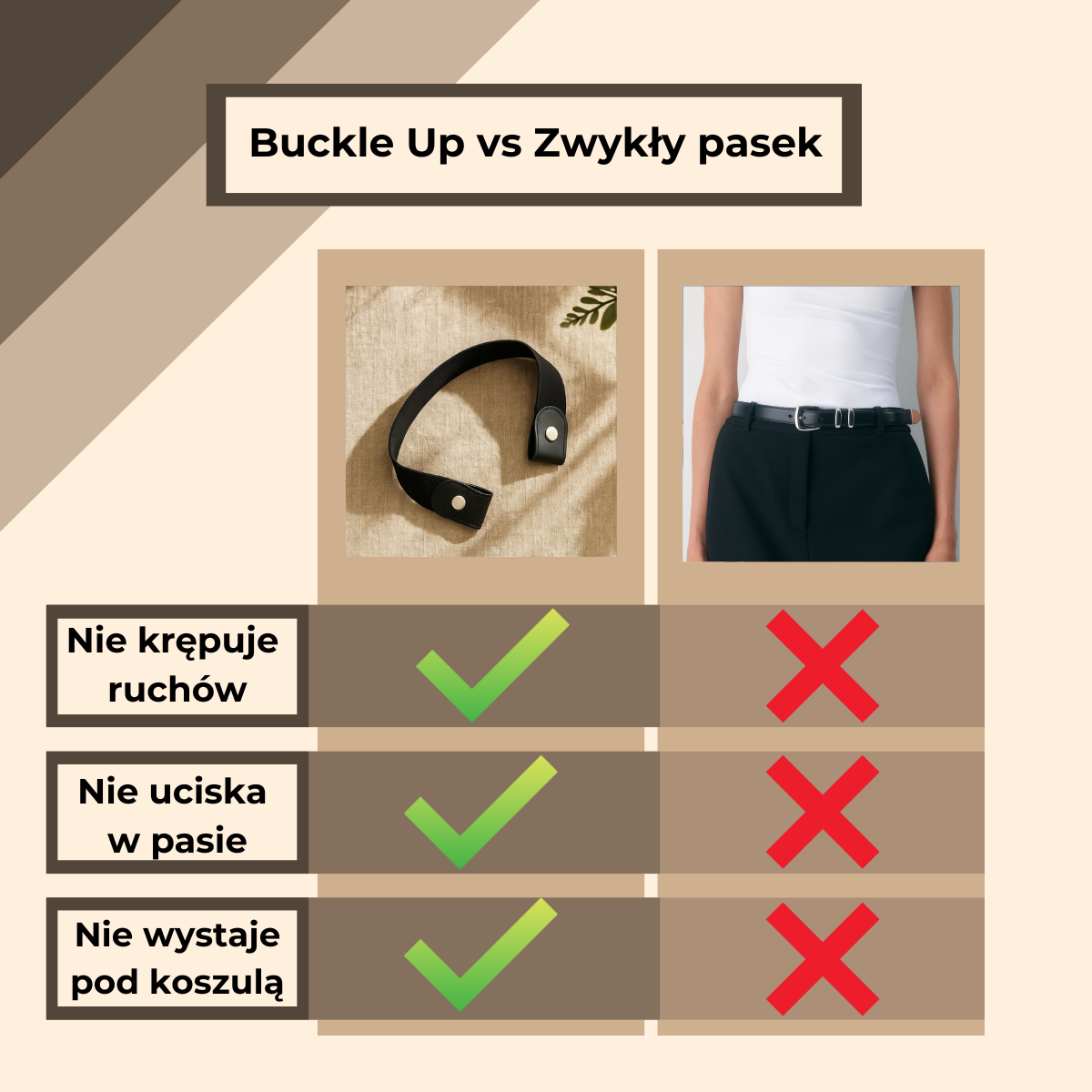 Ucisk w pasie to problem standardowych pasków, z Buckle Up to już przeszłość. Noś spodnie z pełnią komfortu bez żadnego ucisku!